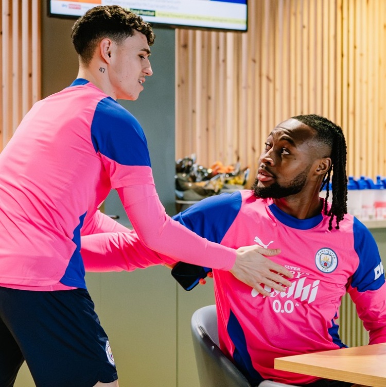 直播吧1月10日讯 曼城官方晒图,福登、B席等队友欢迎新援塞梅尼奥。